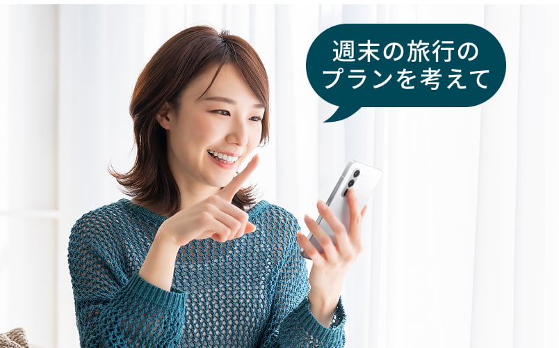 「質問や検索」欄に知りたいことを入力するだけで、インターネットから最適な情報を探し、まとめて教えてくれます。