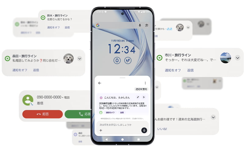 複数のメッセージアプリに届いた未読の通知を整理し、分かりやすく要約して教えてくれます。