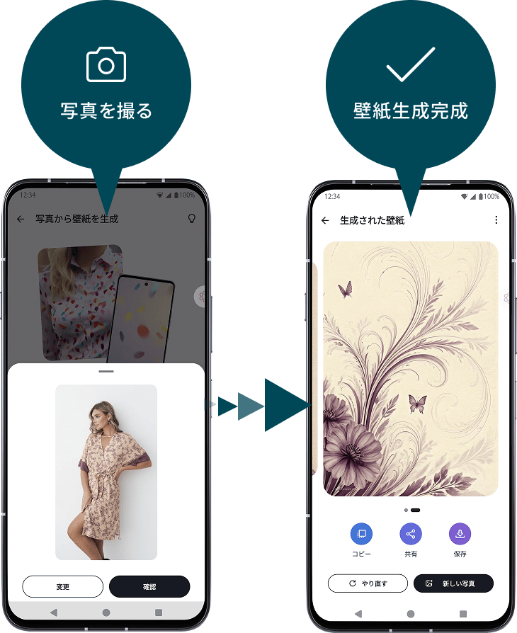 さらに、今日のコーディネートを写真で読み込めば、それに合った壁紙を自動生成。
