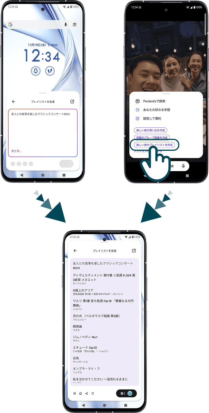 かんたんな文章や現在の画面に合わせて、音楽プレイリストを生成します。