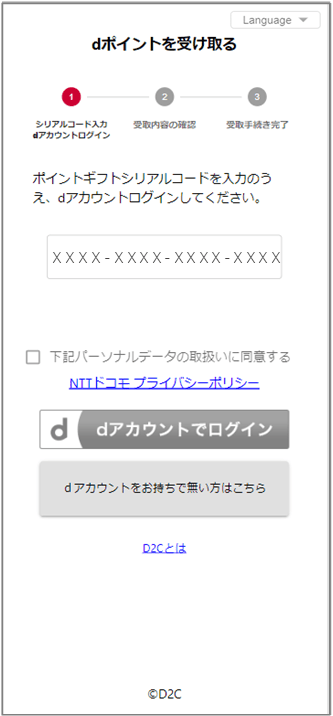 dポイント受取サイトでシリアルコードを入力することで、dポイントを受け取ることができます。
