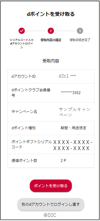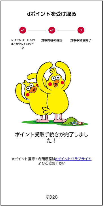 - dポイント受取サイトより、ご自身でポイントをお受け取りいただきます。