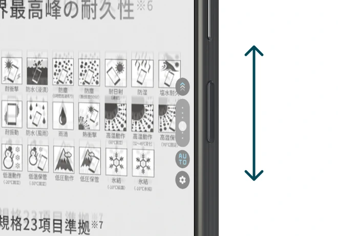 ※6以下すべての項目に対応していることに依る。無故障・無破損を保証するものではありません。(2025年5月現在。未来トレンド研究機構調べ)10mm以下のスマートフォン且つ、MIL規格23項目への対応且つ、IP6Xの対応且つ、IPX6/8/9への対応且つ、1.5mからコンクリートに落下させる試験をクリアすること。