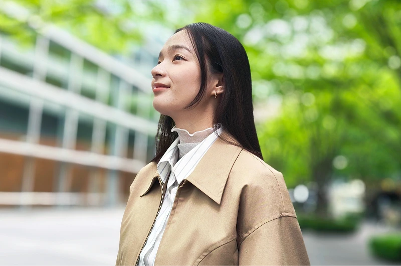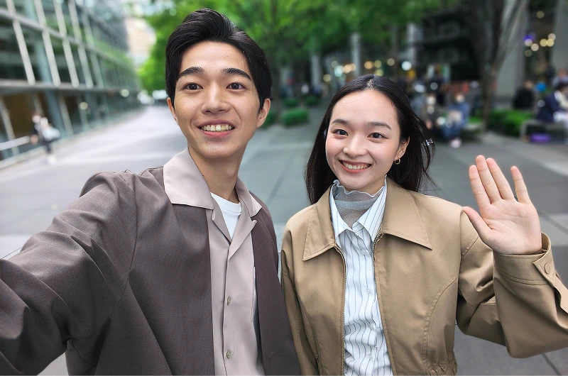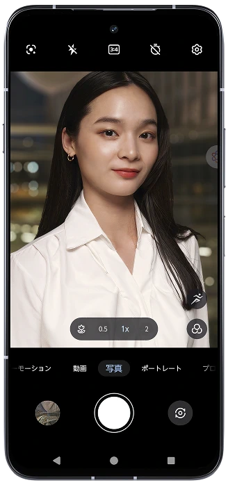 AIが人物の顔のパーツを個別に認識し、それぞれに最適な調整を施します。また、手のひらでシャッターを操作できるハンズフリー撮影機能により、自由なポーズでの撮影が可能です。